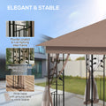 10' X 11.5' Metal Patio Gazebo, Double Roof Outdoor Gazebo Canopy Shelter W/Tree Motifs Corner Frame And Netting, Brown