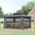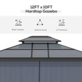 10' x 12' Hardtop Gazebo Canopy with Polycarbonate Roof, Aluminum Frame, Permanent Pavilion Outdoor Gazebo with Netting, for Patio, Garden, Backyard, Deck, Lawn, Black