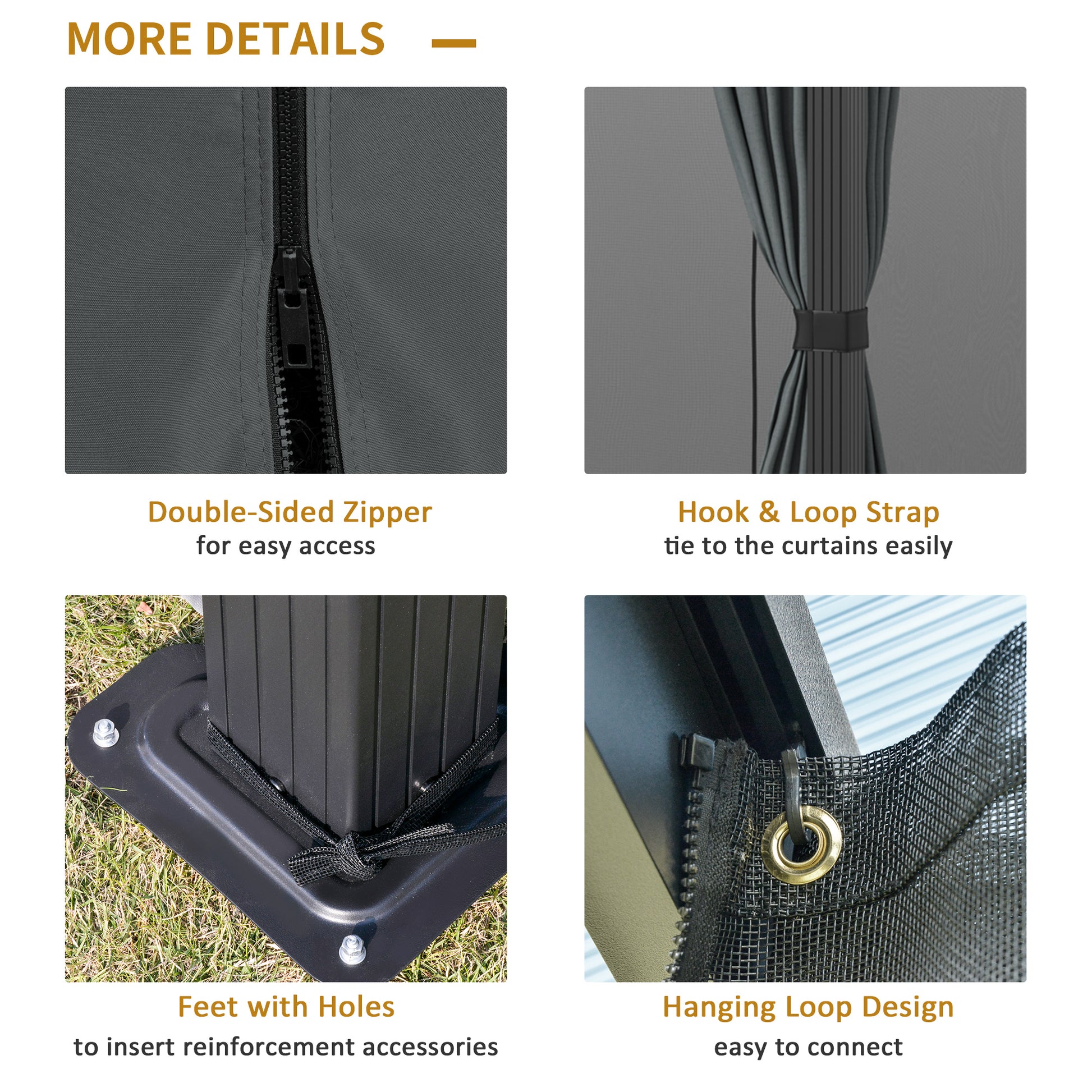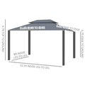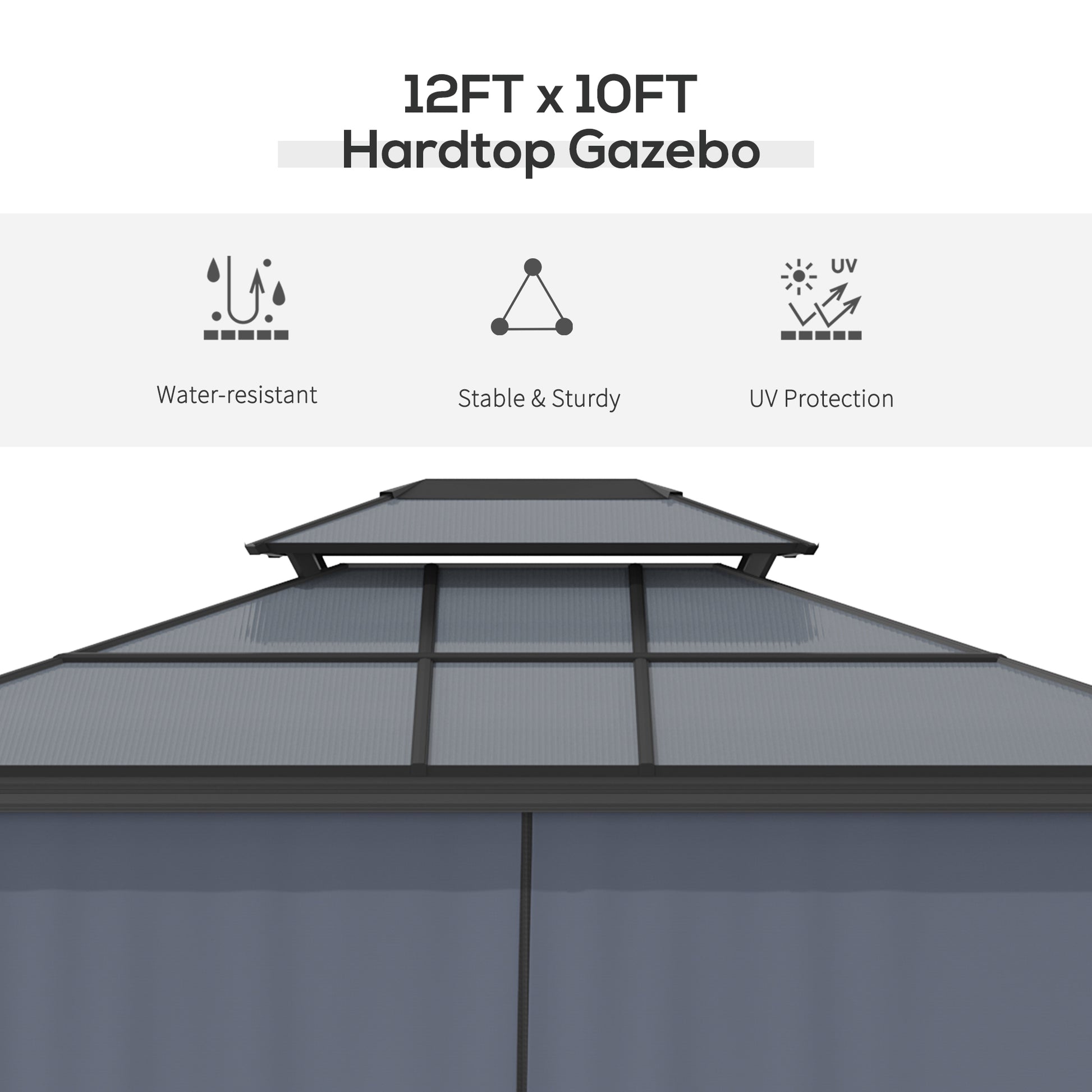 Looking for an easy-to-carry outdoor option for your garden party or poolside plan? [BRAND NAME] has the 10x12 hardtop gazebo that's got you covered. The four zip-on mesh nettings and curtains let you master the elements. The party doesn't end at sundown; hang lights or lanterns from the ceiling. Keep your plans firmly planted on any surface with stakes and adjustable anchor bolts. Made of easy-to-carry, nonrusting aluminum & see-through polycarbonate, this is the cabana that can.