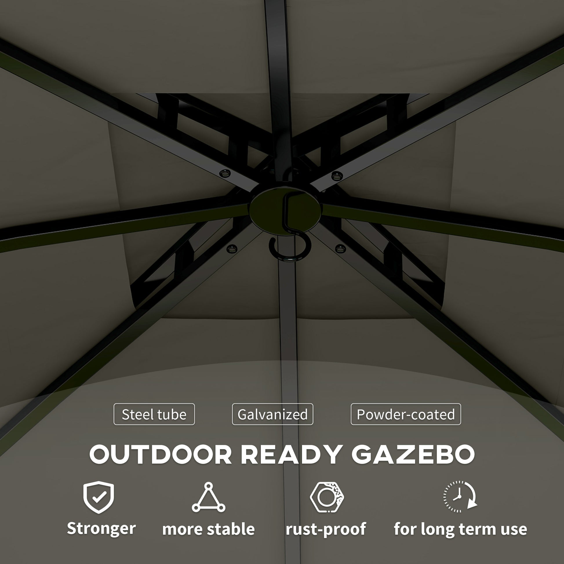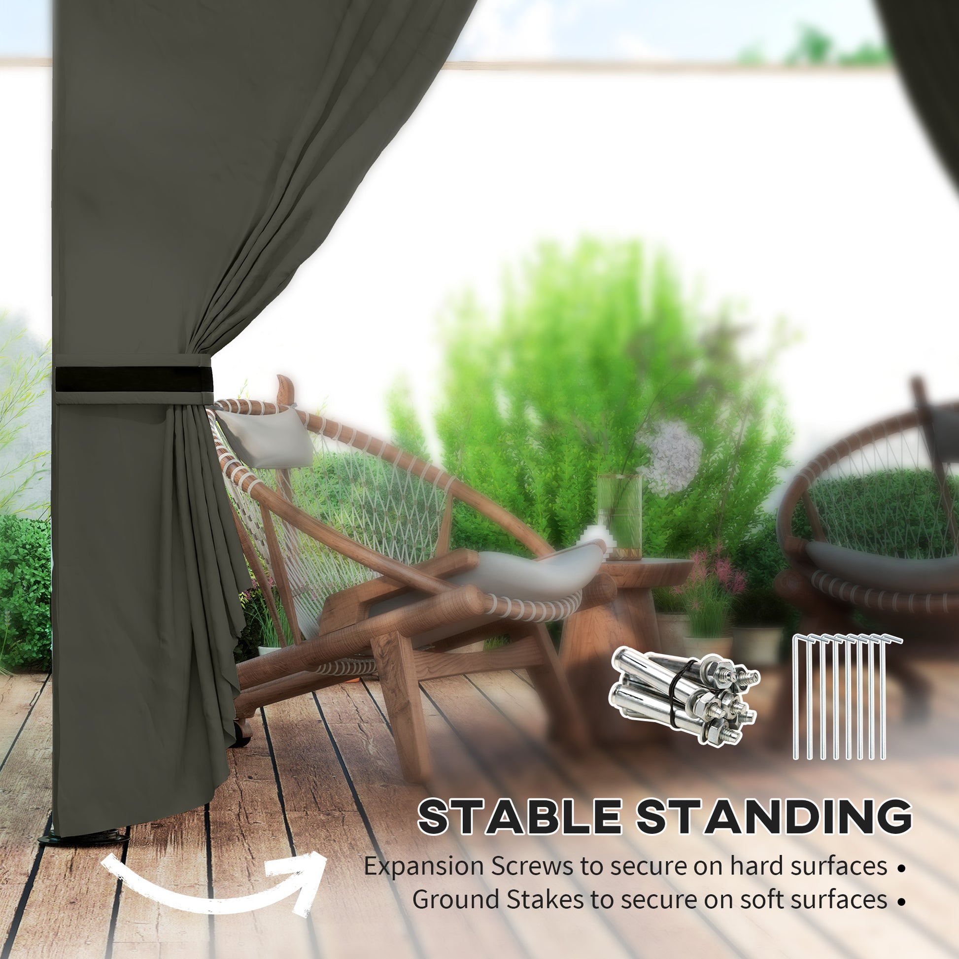 Transform your backyard with the [BRAND NAME] metal gazebo with sidewalls! Enjoy UV protection under a PU-coated roof and curtains while admiring the view through charming church windows. Its powder-coated steel frame and innovative two-tier roof design ensure long-lasting enjoyment, and it is great for covering seating areas or hot tubs. Whether on a sunny day or a breezy evening, this backyard gazebo is your elegant outdoor retreat.