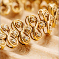 - Care Instructions: To preserve the brilliance of the crystals and gold finish, avoid contact with water, perfumes, and lotions. Wipe gently with a soft microfiber cloth after each use.