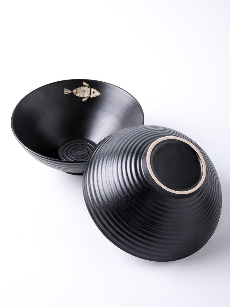 Sakura Threaded Ceramic Bowl Set – 2-Pack Matte Black Japanese